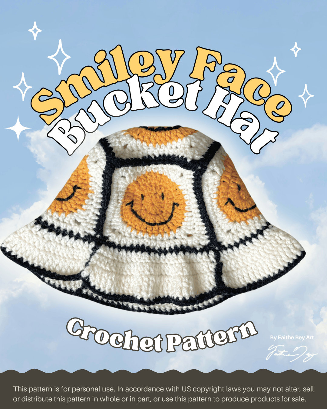 Retro Smiley Face Bucket Hat - Crochet Pattern